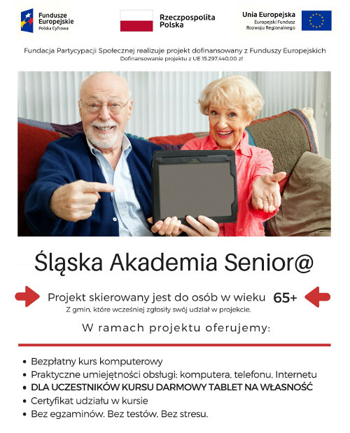 Serdecznie zapraszamy do udziału w szkoleniu kompetencji cyfrowych w ramach projektu „Śląska Akademia Senior@”.