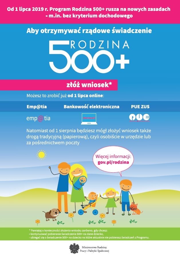 Już od dzisiaj (1 lipca) można składać elektronicznie wnioski o przyznanie świadczenia wychowawczego w ramach programu "Rodzina 500+", które obejmie teraz wszystkie dzieci oraz świadczenia w ramach programu "Dobry start", przysługującego na nowy rok szkolny 2019/2020. W sierpniu Miejski Ośrodek Pomocy Społecznej w Rudzie Śląskiej uruchomi dodatkowe punkty przyjmowania wniosków papierowych.