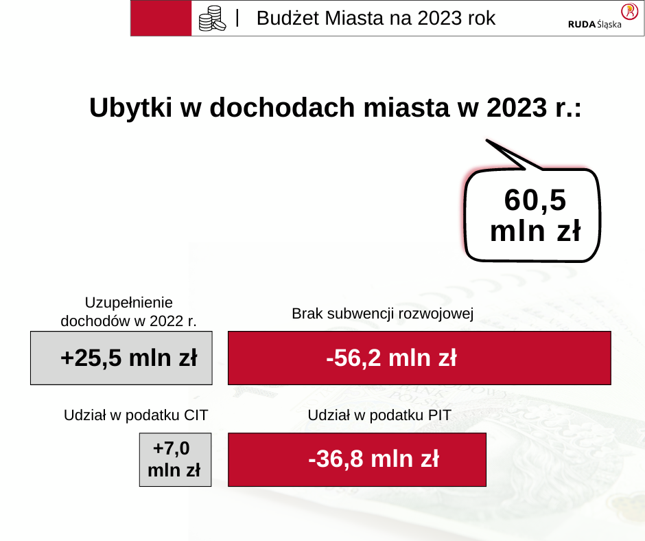 Opublikowany został projekt budżetu Rudy Śląskiej na 2023 rok. Zaplanowane wydatki mają wynieść blisko 1 mld i 51 mln zł, natomiast dochody prawie 935,8 mln zł.