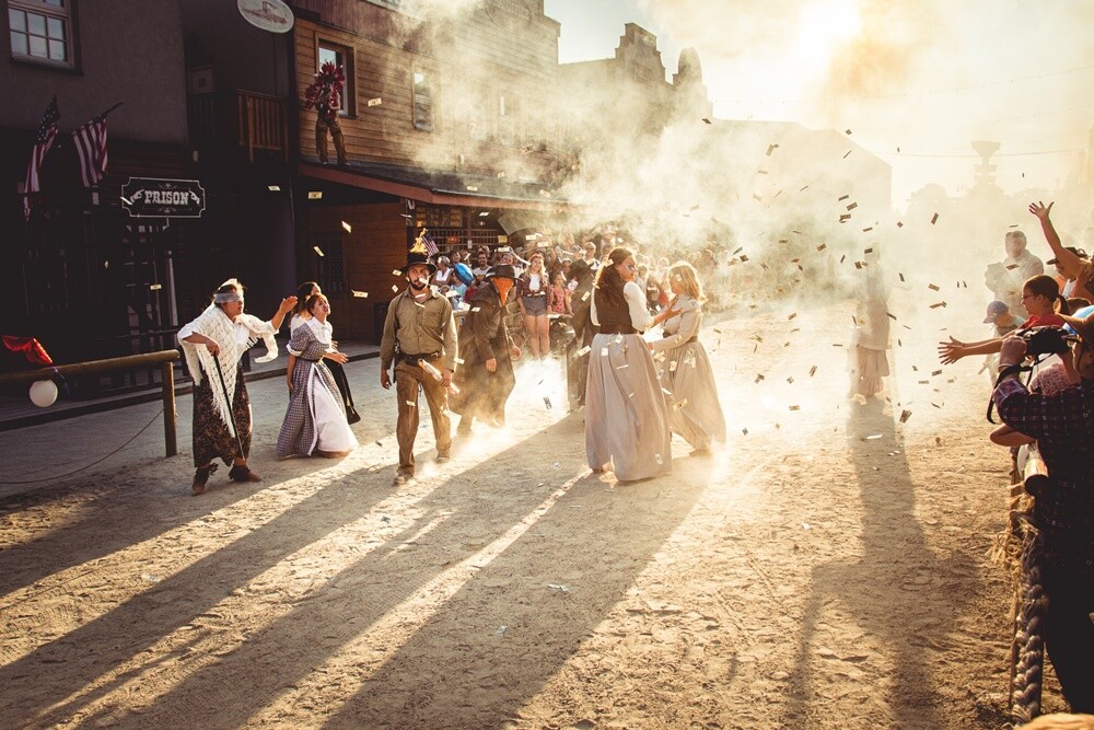 Dzieci mogą spróbować wydoić krowę, wypłukiwać złoto, podkuwać konie, a także strzelać z łuku i strzelby na strzelnicach. Nie brakuje tu również urządzeń typowych dla wesołego miasteczka – koło młyńskie, pędzące karuzele, zjeżdżalnia, dom strachów Nawiedzona Sztolnia i podziemna kolejka.