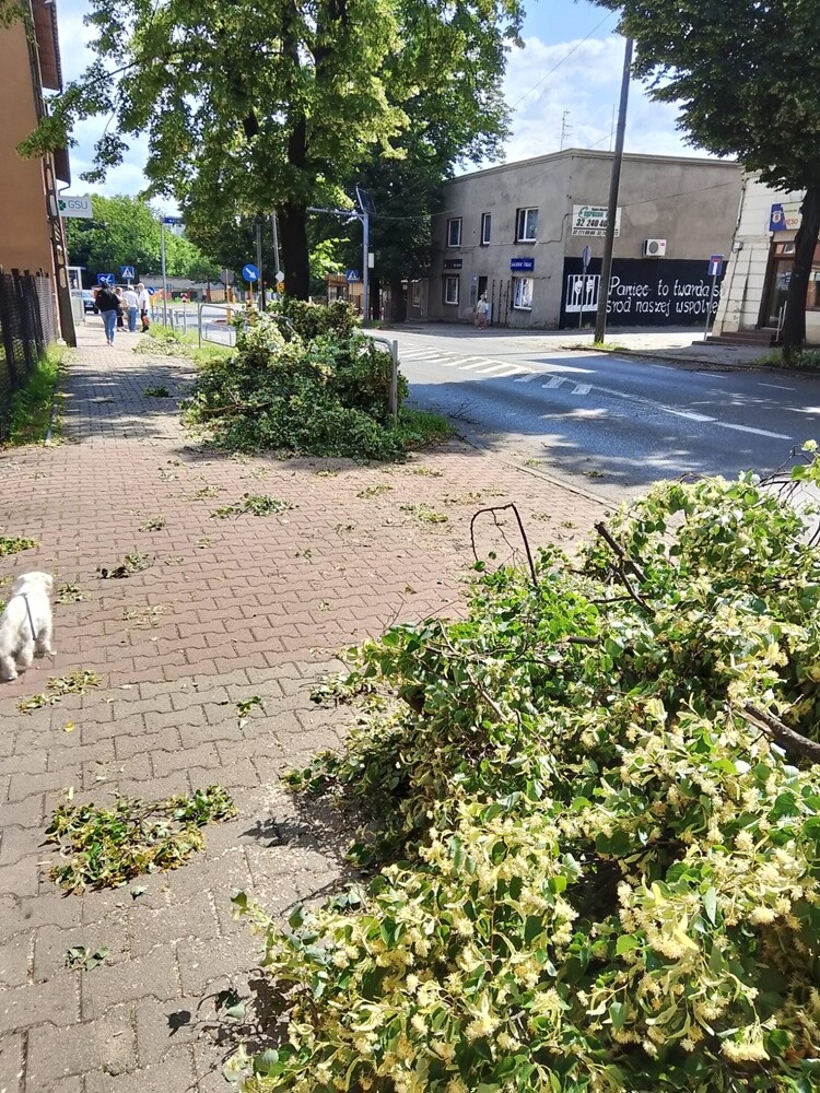 - Rejon ronda przy ul. Kopernika – duże konary zalegające na drodze.