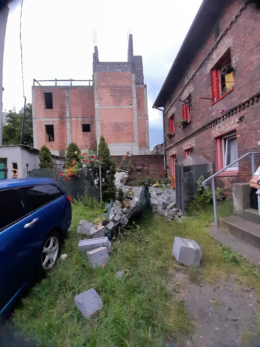 Burza, która przeszła przez Rudę Śląską, wyrządziła poważne szkody. W wyniku silnego wiatru zawaliła się sześciometrowa ściana nowobudowanego, dwukondygnacyjnego budynku, znajdującego się pomiędzy ulicami Tołstoja 4 a 1 Maja 324. Na szczęście nikt nie ucierpiał, ale zniszczenia są znaczne.