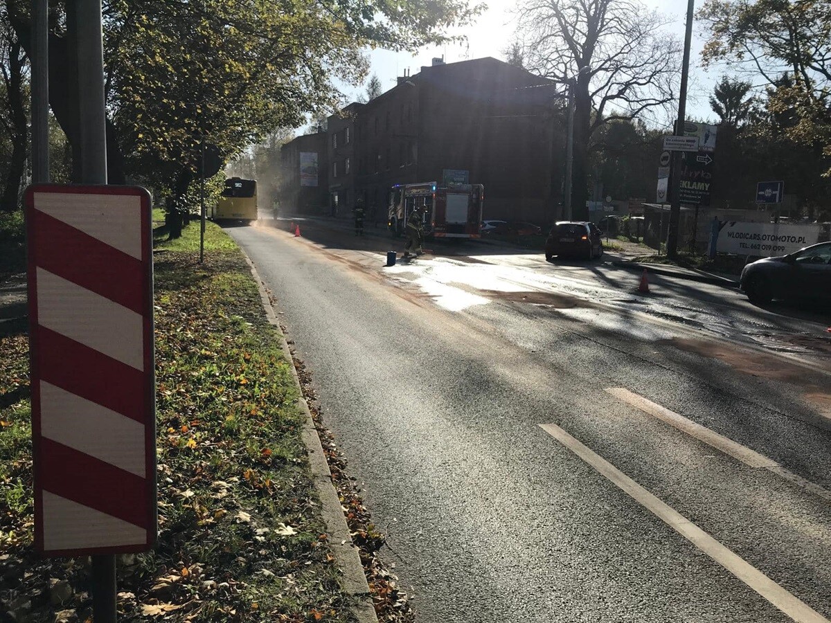 Jak przekazuje st. kpt. mgr inż. Maciej Małczak, na miejscu nie doszło do żadnego zdarzenia drogowego, lecz do rozlania paliwa na drodze.