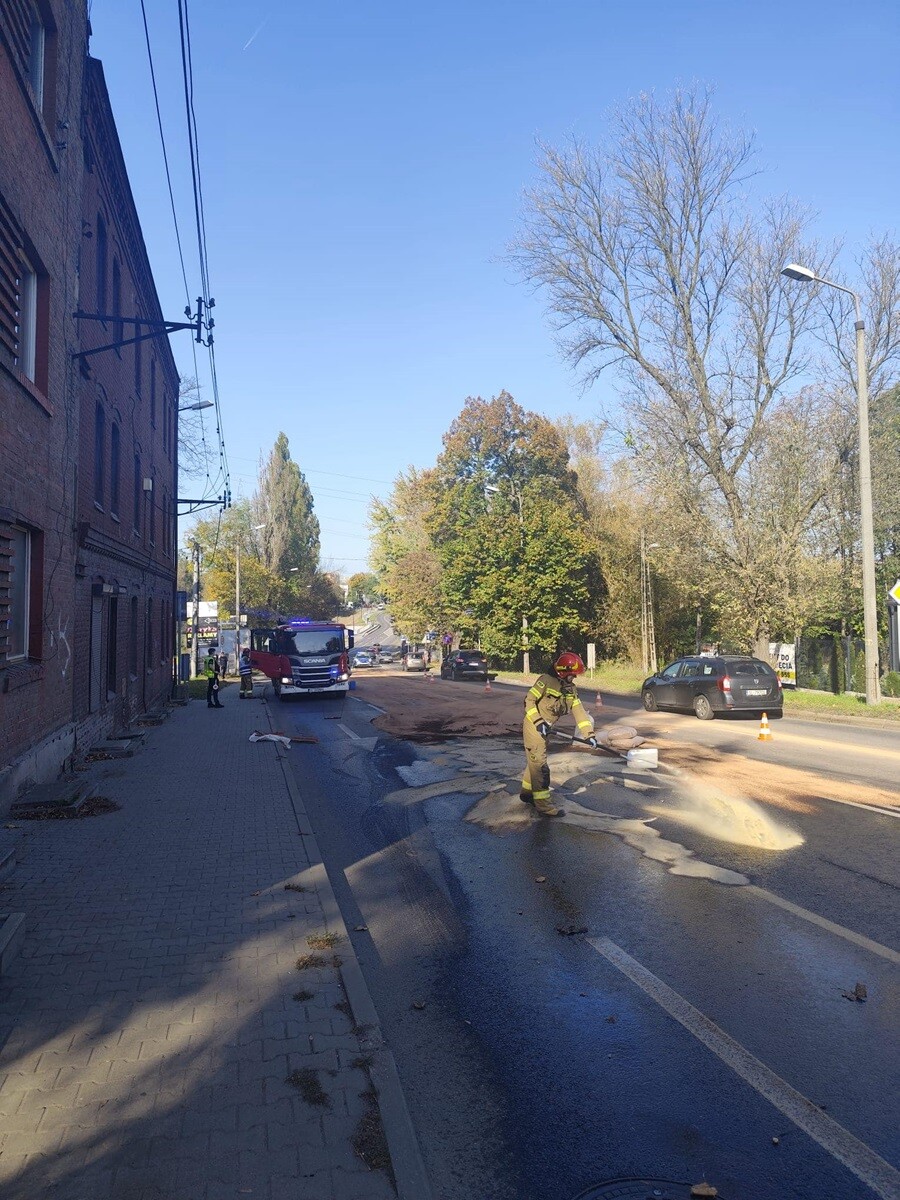 W czwartek, 17 października tuż po godzinie 13:00 na ulicy 1 Maja, przed przejazdem kolejowym w stronę Halemby na jezdni rozlało się paliwo. Na miejscu pracują 3 zastępy strażaków i Policja. Kierowcy muszą liczyć się ze sporymi utrudnieniami!