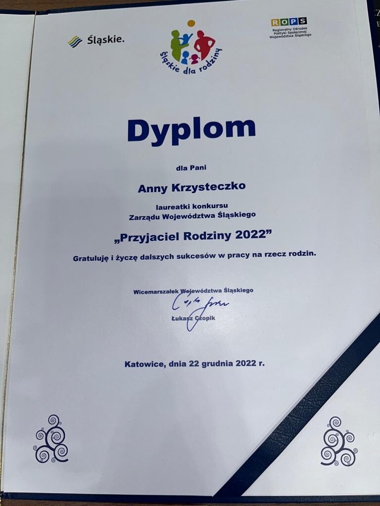 - To dla mnie ogromny zaszczyt, ale też zwieńczenie mojej pracy zawodowej. Pracę z osobami niepełnosprawnymi zaczęłam w 1997 roku jako wolontariuszka w ośrodku dla niepełnosprawnych w Borowej Wsi. To nakierowało moja pracę zawodową na pomoc społeczną, na bycie z ludźmi. Dla mnie rodzina zawsze była, jest i będzie najważniejsza – mówi Anna Krzysteczko.