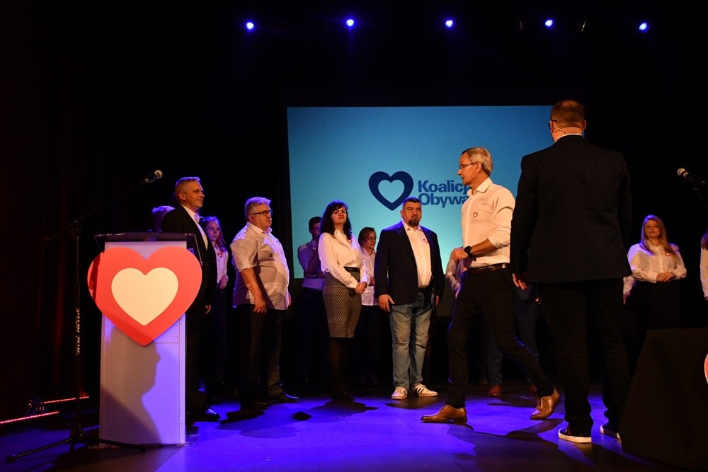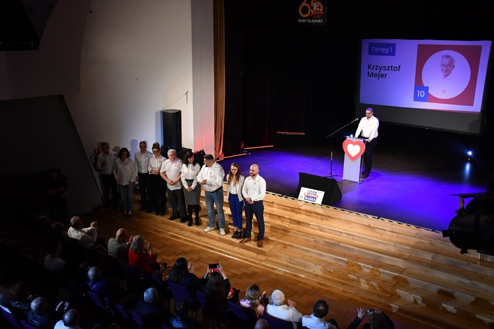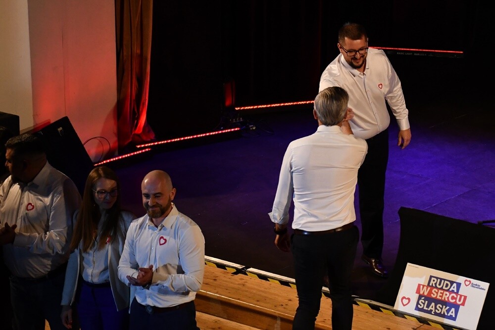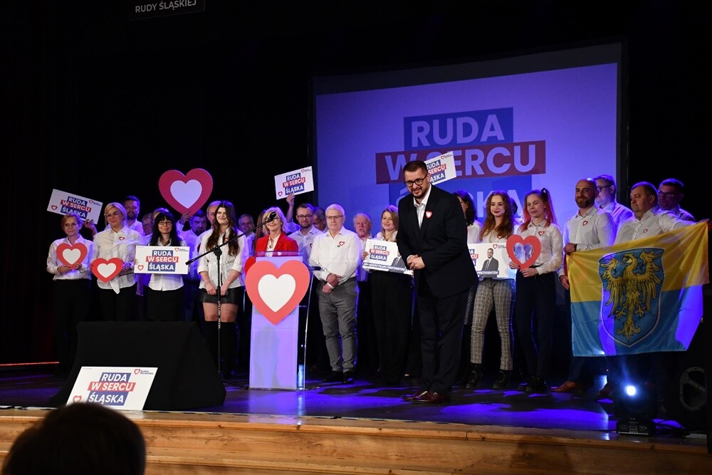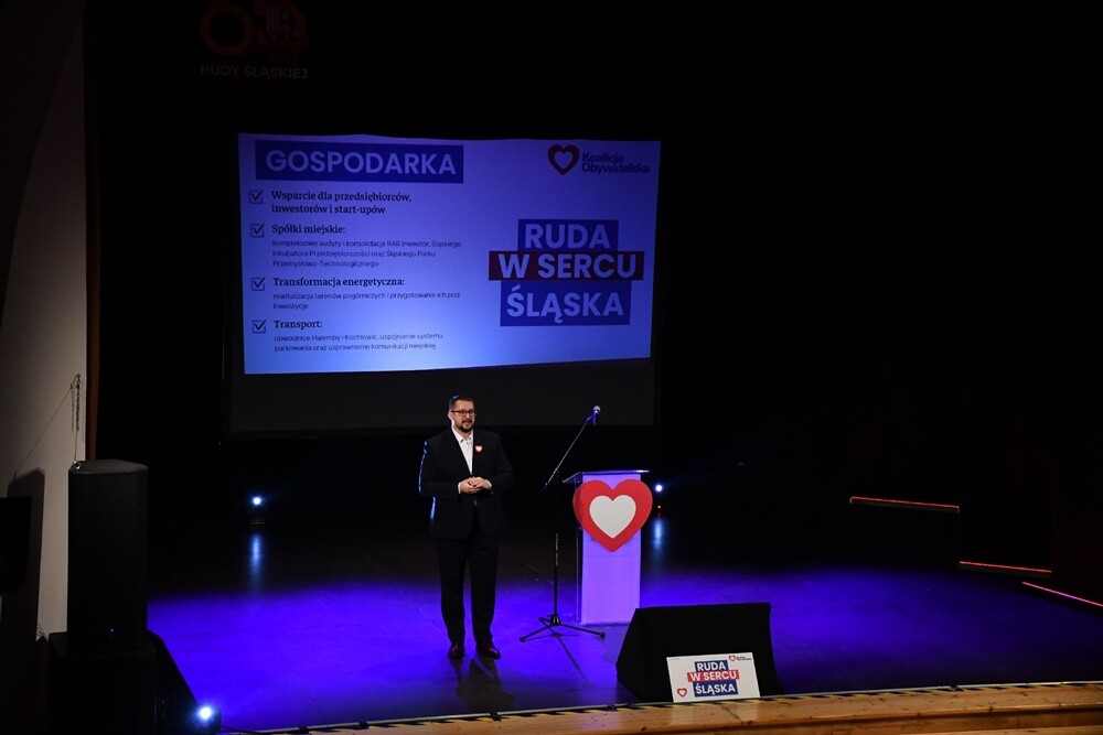 - Stworzyliśmy drużynę, która składa się z młodych ludzi, ale także tych bardziej doświadczonych. Tych doświadczonych poprzez prowadzenie swoich biznesów, menadżerów, a także ludzi, którzy zajmują się kulturą, czy sportem. Jak mówi nasze hasło - "Ruda w sercu Śląska" - nasze miasto ma być dla każdego, nasze miasto ma być w centrum Śląska, nasze miasto ma być przyszłością Śląska. Z tą drużyną zwyciężymy! - mówił Arkadiusz Pilarz, kandydat KO na prezydenta Rudy Śląskiej.