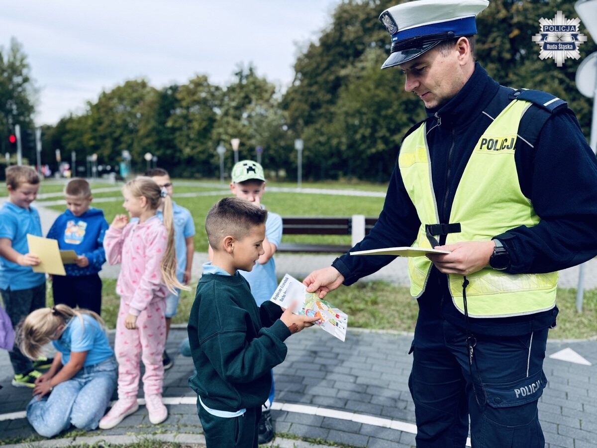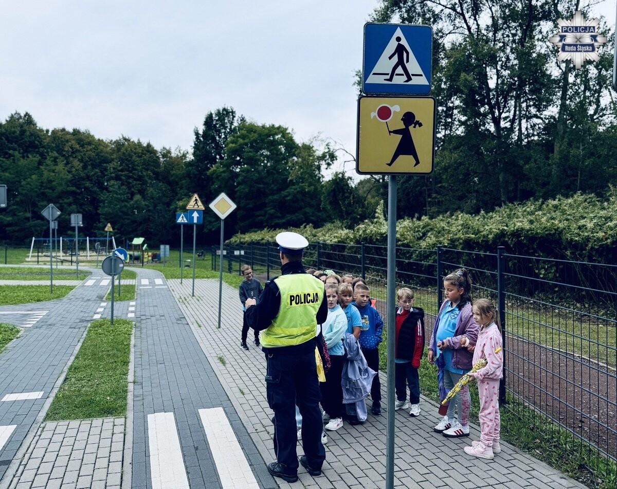 Policjanci z Rudy Śląskiej przeprowadzili zajęcia dla dzieci z zasad ruchu drogowego. Uczniowie ćwiczyli przechodzenie przez pasy, reagowanie w sytuacjach zagrożenia i zasady bezpieczeństwa.