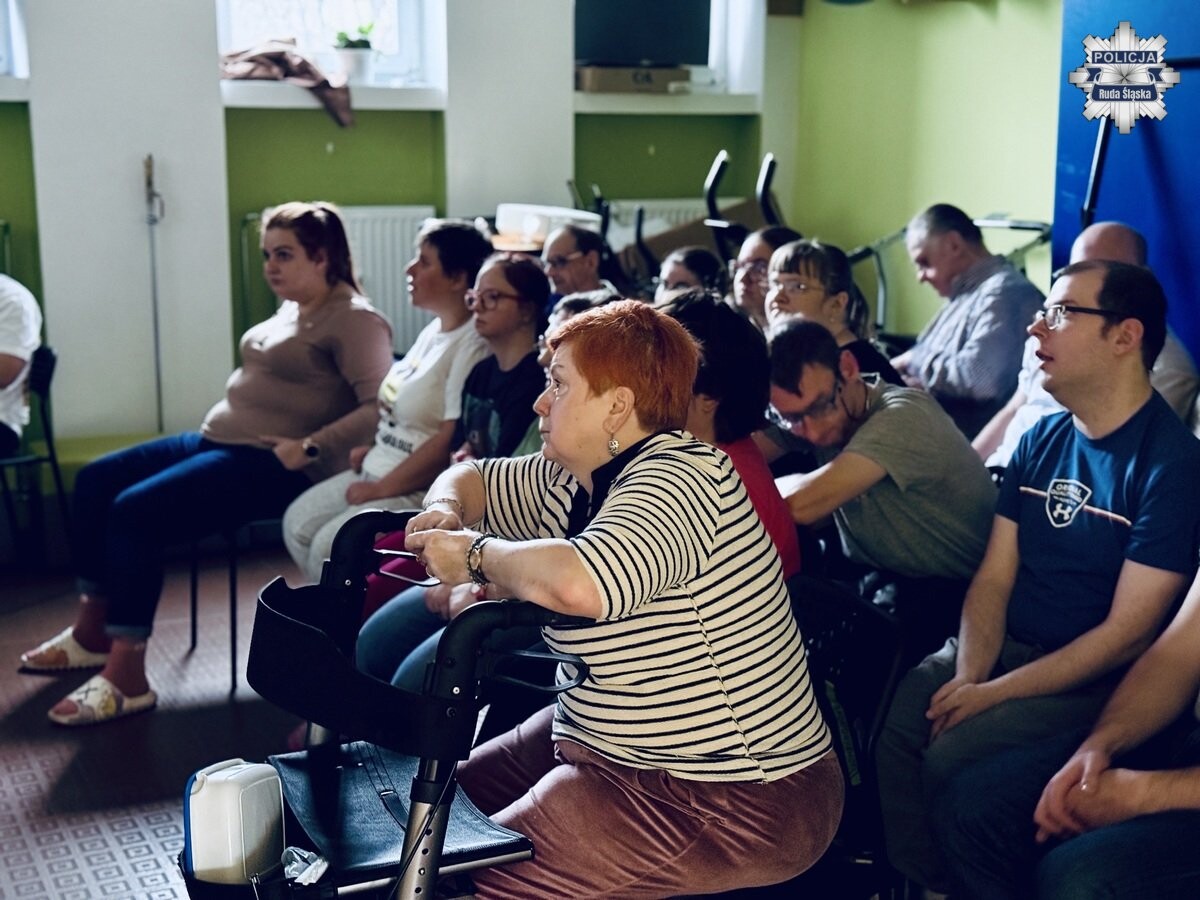 Rudzki profilaktyk i dzielnicowy z Komendy Miejskiej Policji w Rudzie Śląskiej zorganizowali spotkanie z podopiecznymi Stowarzyszenia Rodzin Osób Niepełnosprawnych „Nadzieja”. Celem spotkania było podniesienie świadomości o bezpieczeństwie w życiu codziennym i omówienie zagrożeń, z którymi możemy spotkać się w różnych sytuacjach.