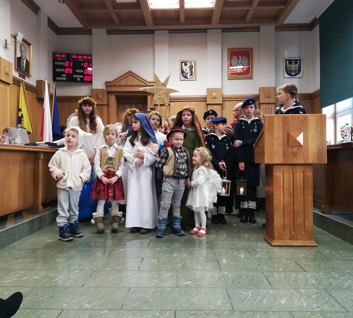 Sesję rozpoczęło tradycyjnie powitanie przez Aleksandrę Skowronek, Przewodniczącą Rady Miasta, wszystkich zebranych oraz wystąpienie kolędników ze Stowarzyszenia Świętego Filipa Nereusza i Związku Harcerstwa Polskiego z Rudy Śląskiej.