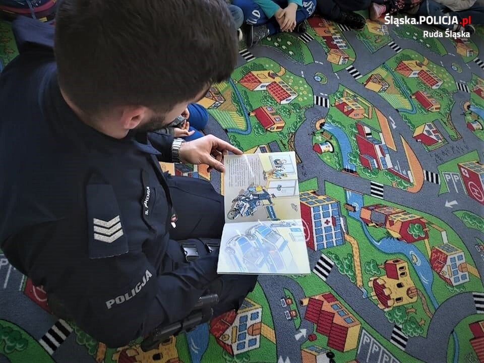 W jednym z rudzkich przedszkoli niedawno pojawił się z książką dzielnicowy z halemby sierż.szt. Szymon Sikora.