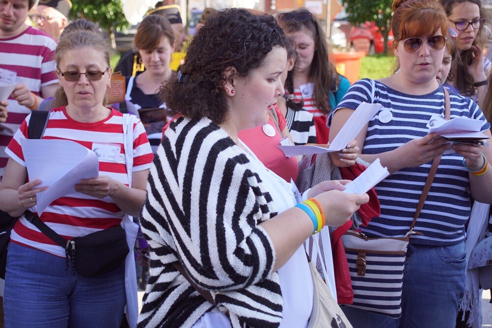 Dzisiaj odbyła się Noc Chórów! W siedmiu miejscach Nowego Bytomia swój repertuar zaprezentowało 11 zespołów. To w sumie 700 minut muzyki! Gościem specjalnym wydarzenia był chór Csikszerda z Budapesztu. To właśnie stamtąd zaczerpnięto ideę wydarzenia, czyli przedstawienie muzyki chóralnej szerszej widowni poprzez wyjście artystów na ulice miasta.
