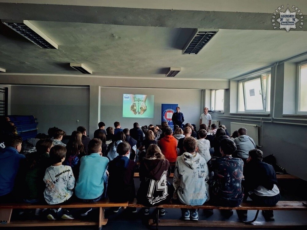 Wczoraj w Szkole Podstawowej nr 15 w Rudzie Śląskiej odbyło się spotkanie profilaktyczne w ramach kampanii społecznej „Wkraczasz w dorosłość – Wybieraj”. W wydarzeniu uczestniczyli uczniowie klas siódmych, którzy wysłuchali prelekcji przedstawicieli Policji oraz Powiatowej Stacji Sanitarno-Epidemiologicznej w Rudzie Śląskiej.