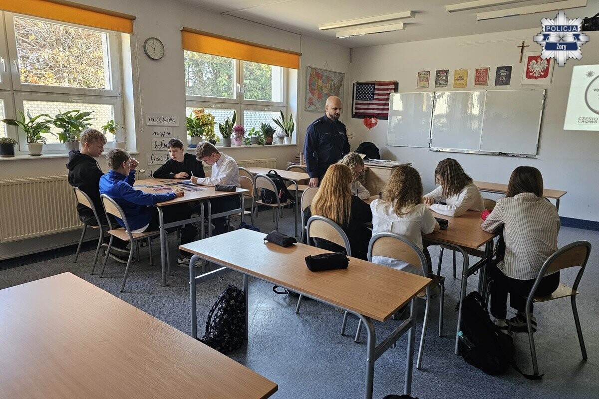 W Szkole Podstawowej nr 11 w Żorach odbyły się niecodzienne zajęcia z udziałem funkcjonariusza policji. W ramach profilaktyki i edukacji społecznej, uczniowie wzięli udział w dwóch tematycznych spotkaniach dostosowanych do ich wieku.