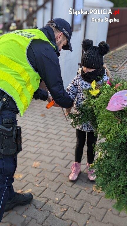W tym roku dzielnicowi z Komisariatu Policji V w Rudzie Śląskiej - Halembie mając na uwadze duże skupienie ludzi w okolicach cmentarzy, rozdawali elementy odblaskowe. Celem tych działań było uświadomienie ludziom, jak ważne są odblaski, które zdecydowanie poprawiają widoczność pieszego po zmroku. Korzystając z okazji, policjanci informowali mieszkańców o zaletach noszenia elementów odblaskowych po zmroku, oraz o tym, że warto nosić je nie tylko w miejscach, w których wymagają tego przepisy.