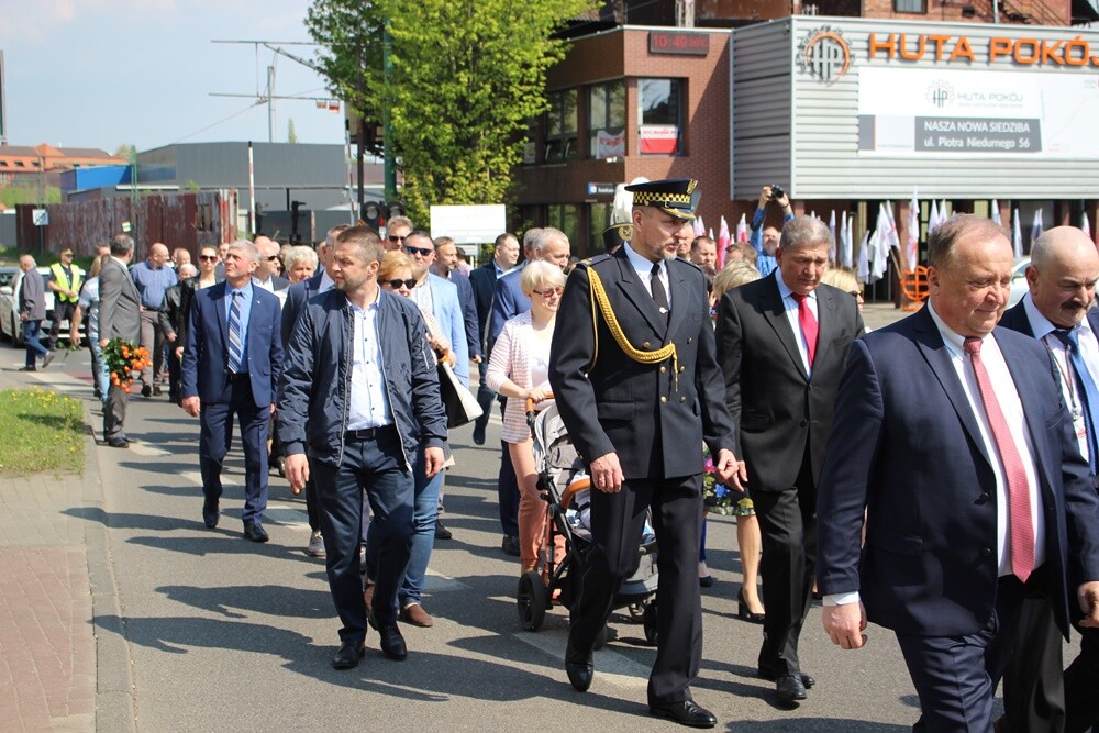 Z okazji Dnia Hutnika władze miasta, dyrekcja, pracownicy i emeryci spółek Huty Pokój, Huty Pokój Profile, Huty Pokój Konstrukcje oraz mieszkańcy i sympatycy przemaszerowali przez dzielnicę w towarzystwie orkiestry i pocztów sztandarowych.