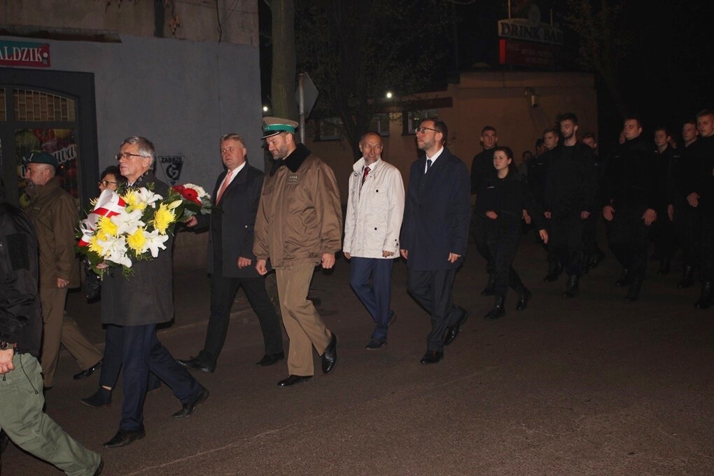 Po zakończonym ślubowaniu uczniowie wraz z rodzicami oraz mieszkańcami pobliskich ulic, którzy tłumnie przybyli na uroczystość, przeszli w asyście orkiesty dętej pod Pomnik Obrońców Ojczyzny przy ul. kard. Hlonda. Pod pomnikiem dyrekcja szkoły, przedstawiciele władz miasta oraz służb mundurowych złożyli kwiaty.