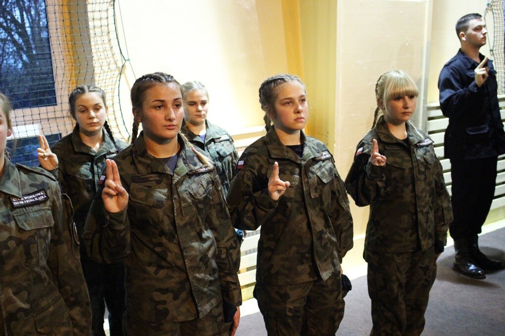 Uczniowie pierwszych klas mundurowych (wojskowej i policyjnej) złożyli uroczyste ślubowanie na sztandar szkoły, a wyróżniający się kadeci z klas drugich i trzecich otrzymali awanse na wyższe stopnie. Na otrzymanie wyższego stopnia awansu wpływa wiele składników. Brane pod uwagę są: zachowanie, średnia ocen oraz zajęcia poligonowe, a także czynny udział w życiu szkoły i miasta. Zdobyte stopnie są istotne w czasie kiedy absolwenci szkoły chcą podjąć służbę w Policji czy w jednostkach wojskowych.