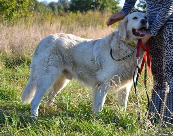 Goldi to mix golden retrievera czy też owczarka podhalańskiego, a może obu tych ras. ma około 5 lat. Goldi został odebrany właścicielowi, który wyjechał, a psa pozostawił na działce z ogromnym krwiakiem ucha. Dziś psiak jest już zdrowy, po operacji wszystko ładnie się zagoiło. Goldi ma cudowny charakter. Kocha ludzi i ich towarzystwo. Uwielbia się przytulać i dawać buziaki.