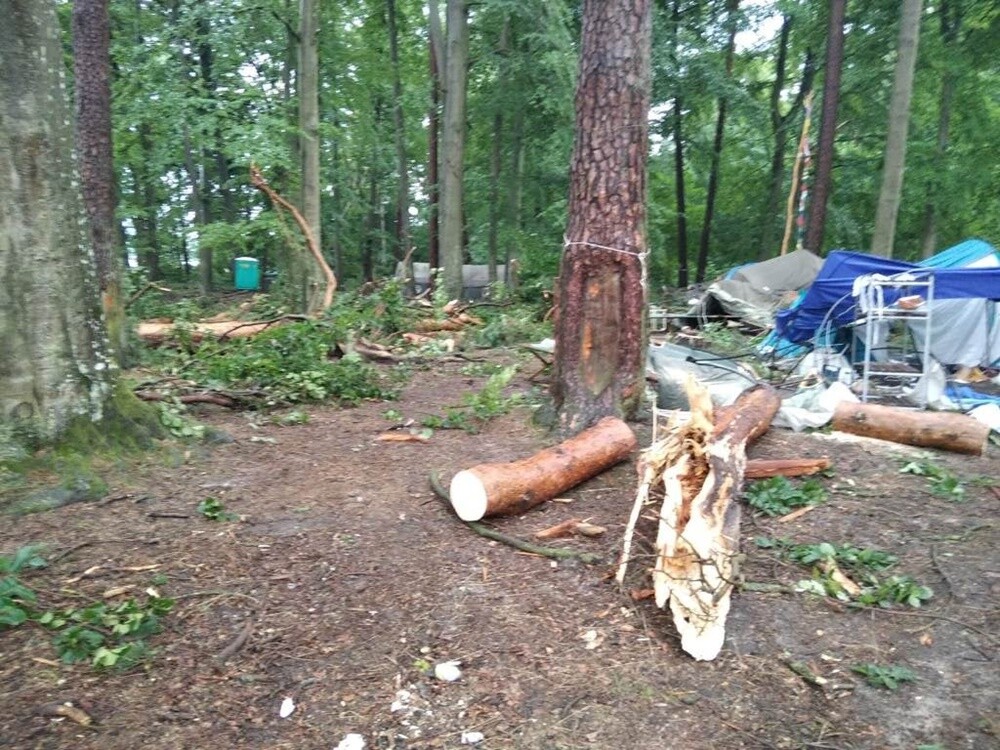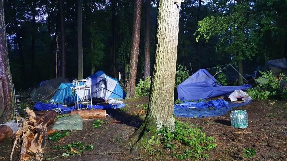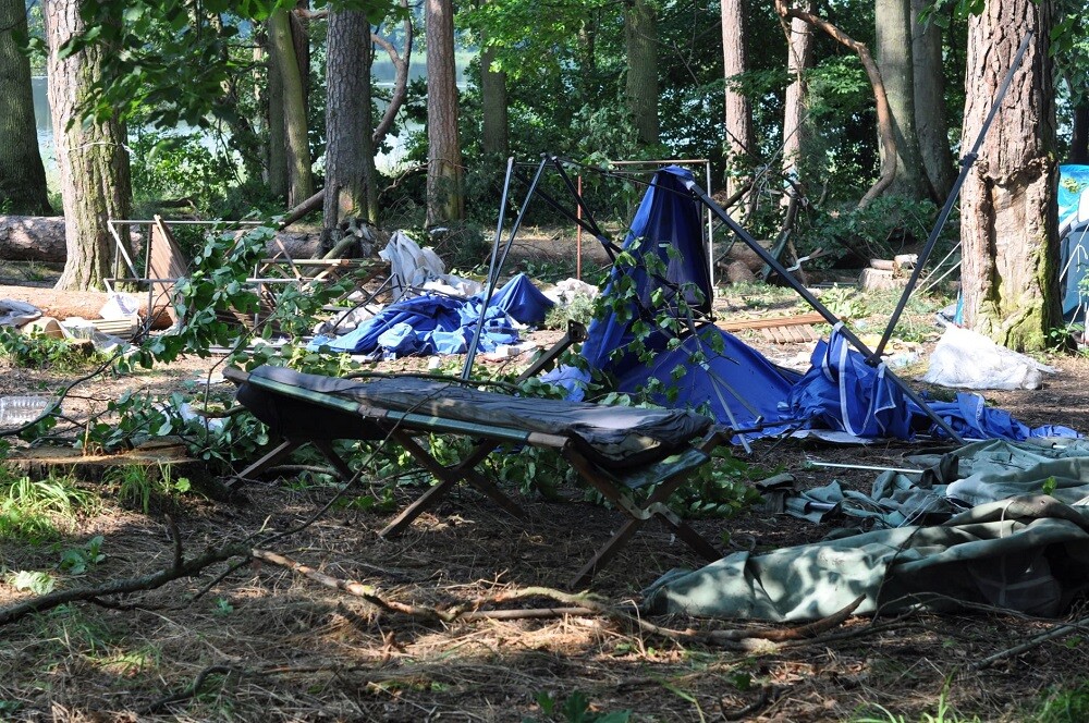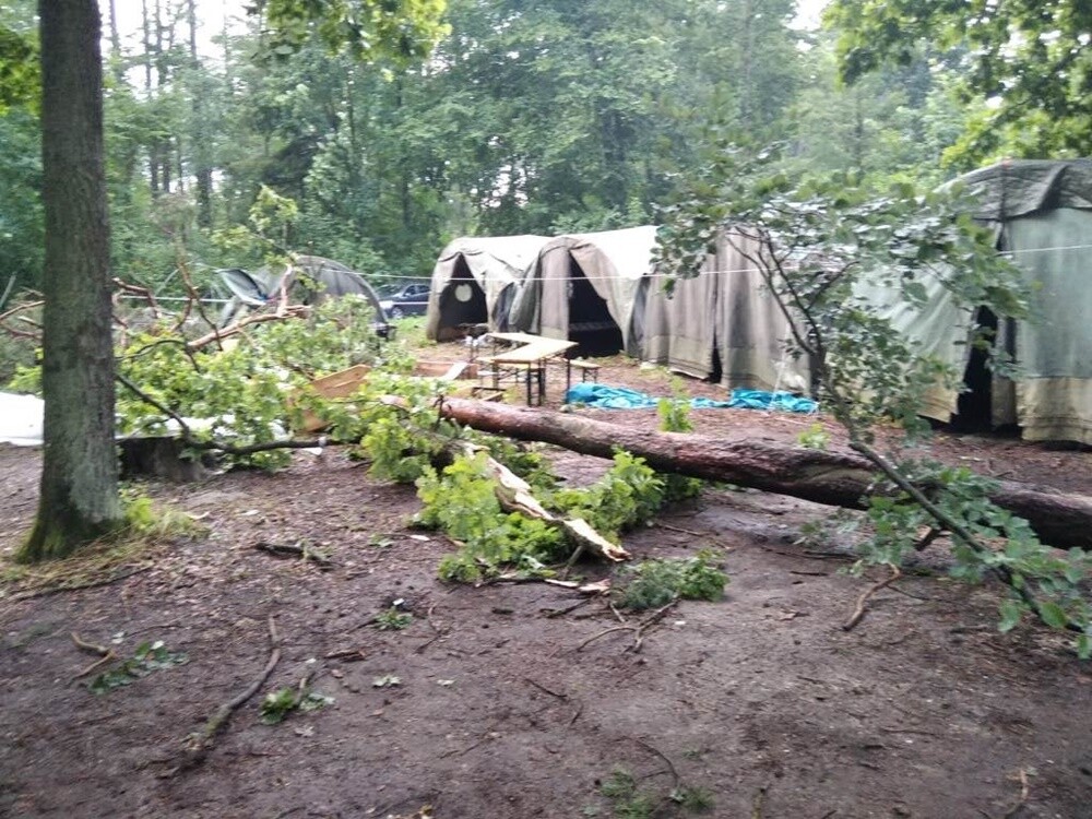 Wczorajsza burza i silny wiatr połamały gałęzie drzew oraz przewróciły kilka namiotów. Na bazie przebywało prawie 200 osób, w większości nieletnich uczestników obozów harcerskich. Nikomu nic się nie stało. Jednak ze względów bezpieczeństwa wszystkich ewakuowano do pobliskich Małdyt.