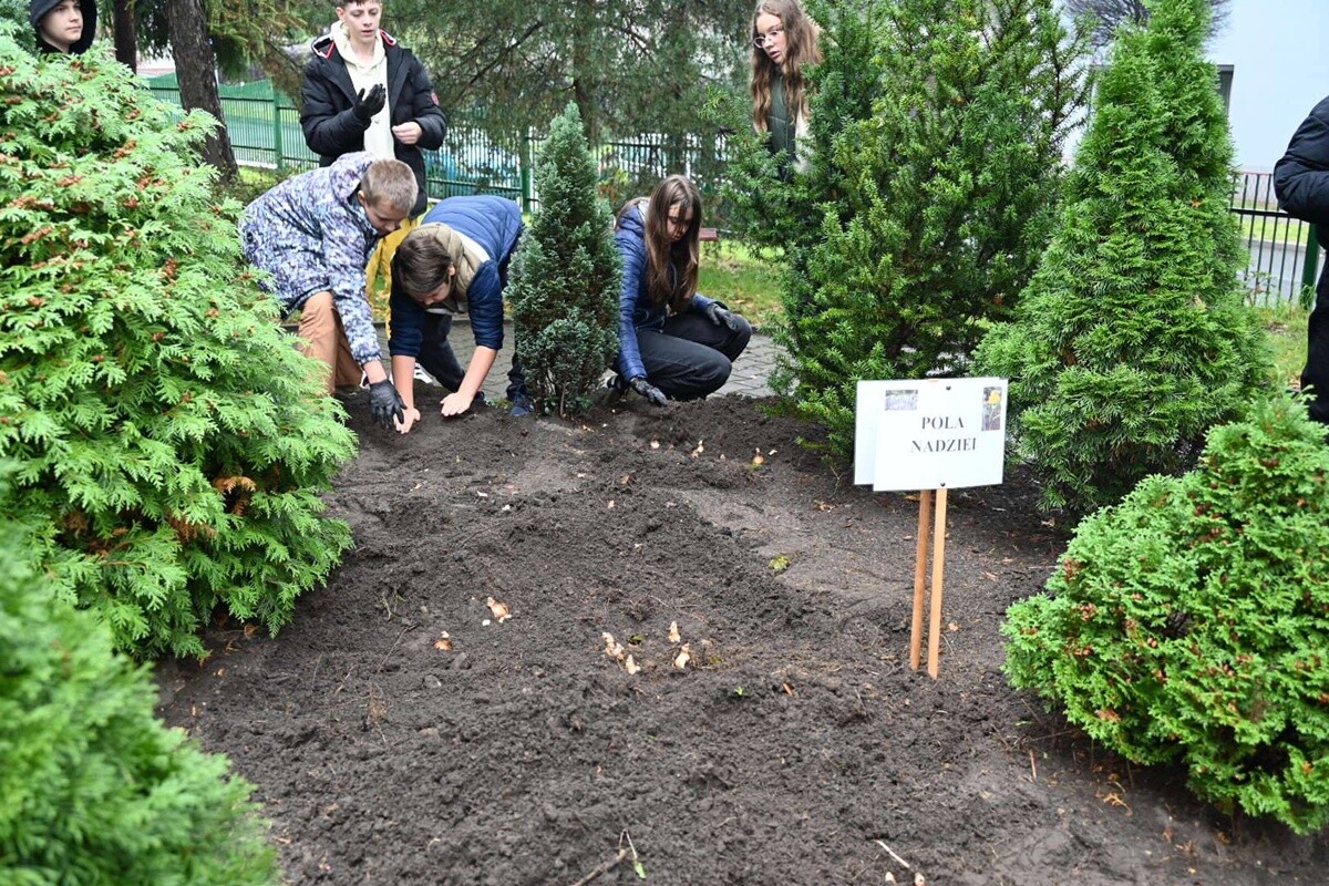 Podczas wydarzenia uczestnicy mieli również okazję porozmawiać o działalności Hospicjum Domowego im. św. Jana Pawła II, które od lat niesie pomoc chorym w Rudzie Śląskiej. Wspólnie z wolontariuszami, pracownikami szkoły i przedstawicielami hospicjum udało się zasadzić kolejne żonkile, które będą rosły jako symbol pamięci, wsparcia i wspólnoty.