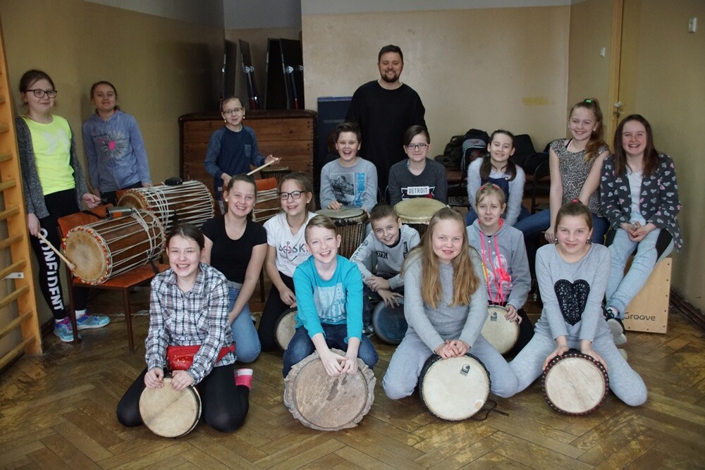 - Pomysł wziął się stąd, że gram na bębnach, lubię to robić i chcę się tą pasją dzielić z dzieciakami. Przy okazji jest to pomysł na kreatywne spędzenie wolnego czasu i rozładowanie energii – mówił Andrzej Żydek. – Spotykamy się w każdy poniedziałek w szkole i gramy. Najbardziej wyjątkowe dla mnie było to, że dzieci już po pierwszych zajęciach myślały o kolejnych. Jest to dla nich coś innego, nowego. Na zajęciach nigdy nie jest nudno, gramy i śpiewamy. Ostatnio wprowadziliśmy nawet nowe bębny. Poziom trudności gry również dostosowujemy do możliwości grupy, żby była to dla dzieci przyjemność, a nie obowiązek – dodał.