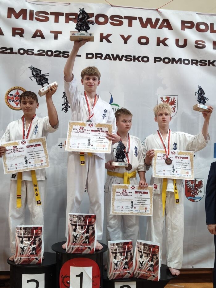 Zawodnicy rudzkich klubów sportowych przyzwyczaili nas już do sukcesów! 21 czerwca w Drawsku Pomorskim odbyły się Wagowe Mistrzostwa Polski w Karate Kyokushin. Do rywalizacji stanęli przedstawiciele Rudzkiego Klubu Kyokushin Karate, którym w sumie udało się wywalczyć 7 medali – 3 złote, 3 srebrne i brąz! Dwóch zawodników wywalczyło tytuły Mistrza Polski. Sukcesy zawodników pozwoliły Rudzkiemu Klubowi Kyokushin Karate zająć 3. miejsce w klasyfikacji drużynowej na 70 startujących klubów.
