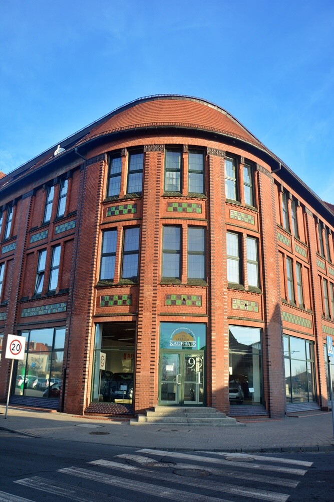 Kaufhaus wybudowany został w 1904 roku w stylu zwanym modernizmem. To naprawdę monumentalny obiekt, któremu nowoczesnego charakteru nadaje wielokwarterowa stolarka okienna o różnorodnych formach. Dekoracja jest raczej skromna, ponieważ tworzą ją pola szachownicowe pod oknami oraz fragmenty fryzu z motywem geometrycznie stylizowanych liści. W głównej klatce schodowej budynku zachowała się jeszcze secesyjna okładzina ceramiczna z motywem kwiatowym.