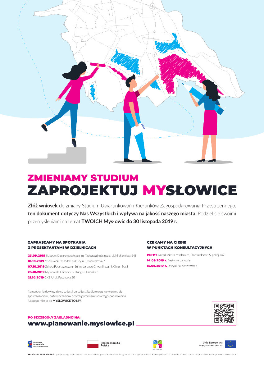 Obecnie ciągle jeszcze, do 30 listopada, czynny jest STAŁY PUNKT KONSULTACYJNY w budynku Urzędu Miasta p.107 oraz wciąż zbieramy opinie na uruchomionej specjalnie geoankiecie dostępnej pod adresem www.geoankieta.myslowice.pl. Wszystkie etapy prac można śledzić na specjalnie przygotowanej stronie www.planowanie.myslowice.pl, na stronie tej dostępne są również wzory wniosków, które można składać do 30 listopada br.