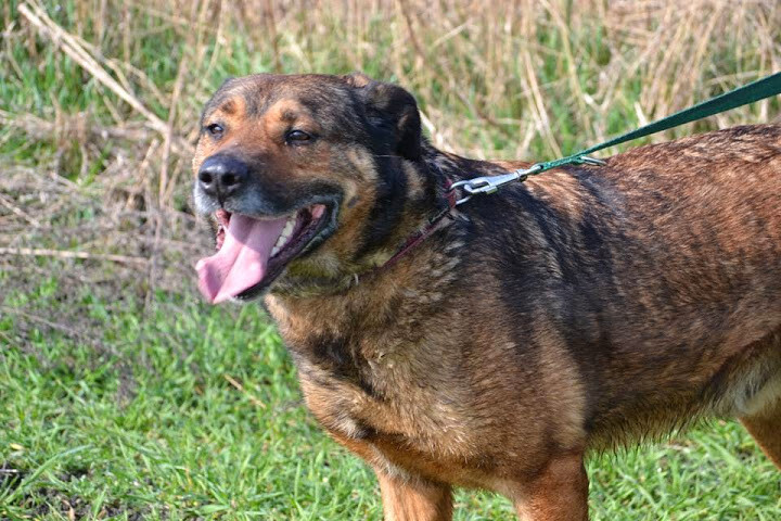 Kościelny "Kostek" to duży brązowo-bury pies z radosnym uśmiechem. Ma około 7 lat. Trafił do schroniska z interwencji, ponieważ ciągle wędrował pomiędzy Kościołem, a cmentarzem. Kościelny początkowo był bardzo przygnębiony i przytłoczony nowym miejscem, jednak po czasie stał się o wiele weselszy i teraz każdego wita z merdającym ogonem. Lubi się bawić i przytulać. Ładnie chodzi na smyczy, a także bez niej, nie próbując uciekać. Jest idealnym psem obronnym jak i stróżem. Akceptuje inne psy, a nawet lepiej się czuje, mając u boku czworonożnego kompana. Kostek to wierny i oddany pies, który na pewno stanie się dobrym towarzyszem i obrońcą. Na dom czeka już 6 lat i naprawdę zasługuje na swoją szansę.