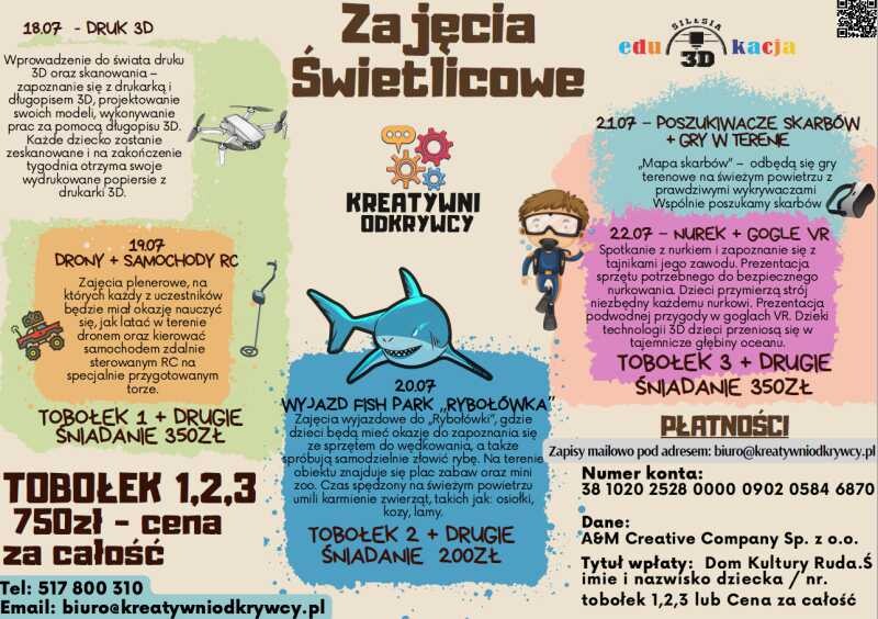 Zapisy tylko pod numerem tel. 517800310 lub biuro@kreatywniodkrywcy.pl