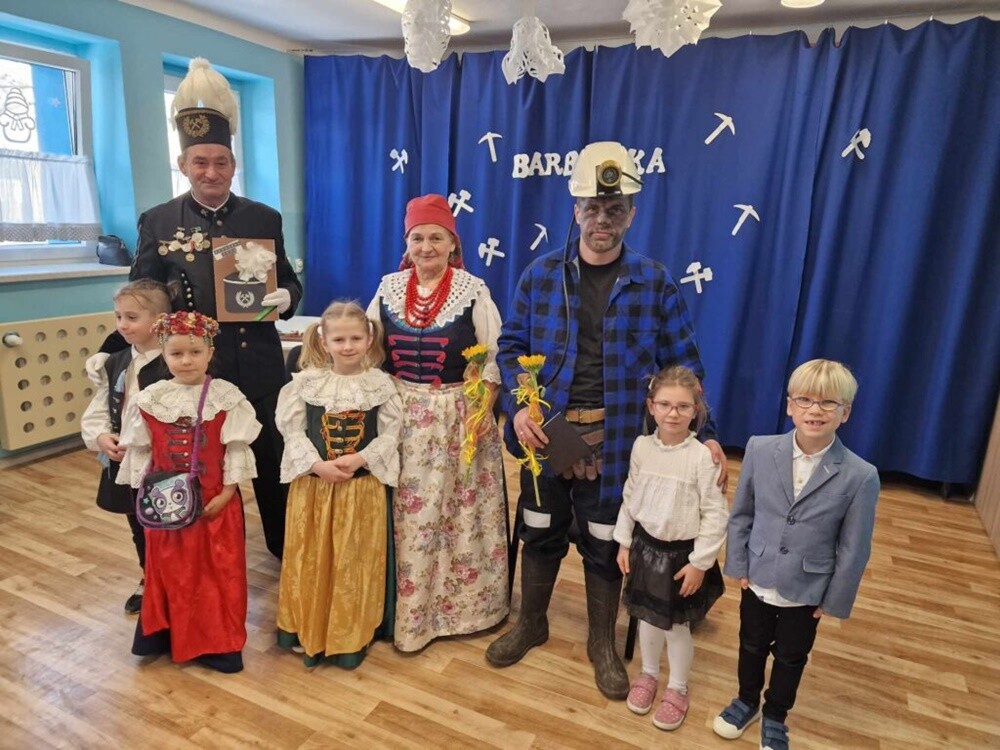 Wkraczając w grudzień, nie mogło zabraknąć śląskich tradycji barbórkowych. Z tej okazji, 4 grudnia przedszkole odwiedzili Krystyna i Zbigniew Lisowie oraz Damian Wyciślik. Dzieci miały możliwość zapoznać się z uniformem i ekwipunkiem górnika pracującego "na dole" oraz podziwiać przepięknie zdobione i pełne symboliki: galowy mundur i suknię górniczej żony.