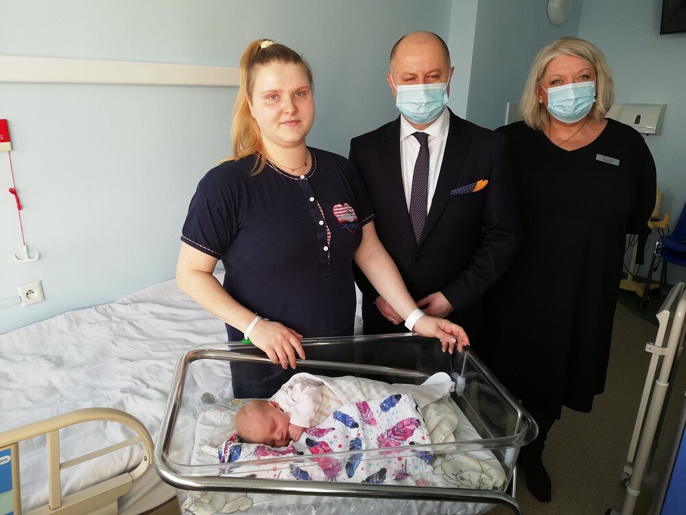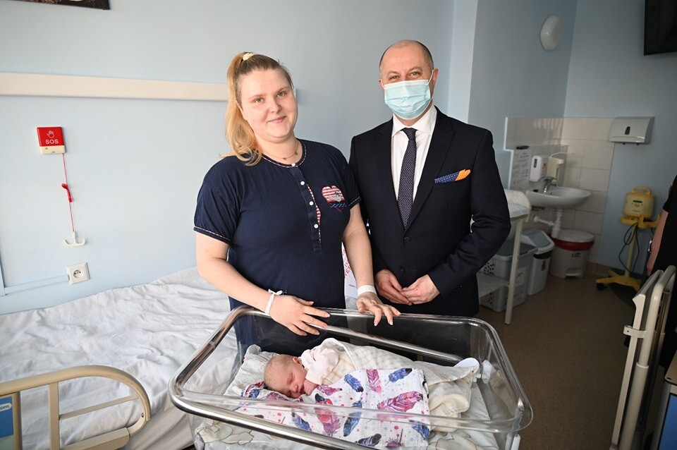 Noworodka i jego mamę odwiedził dzisiaj w szpitalu Michał Pierończyk - Prezydent Rudy Śląskiej.