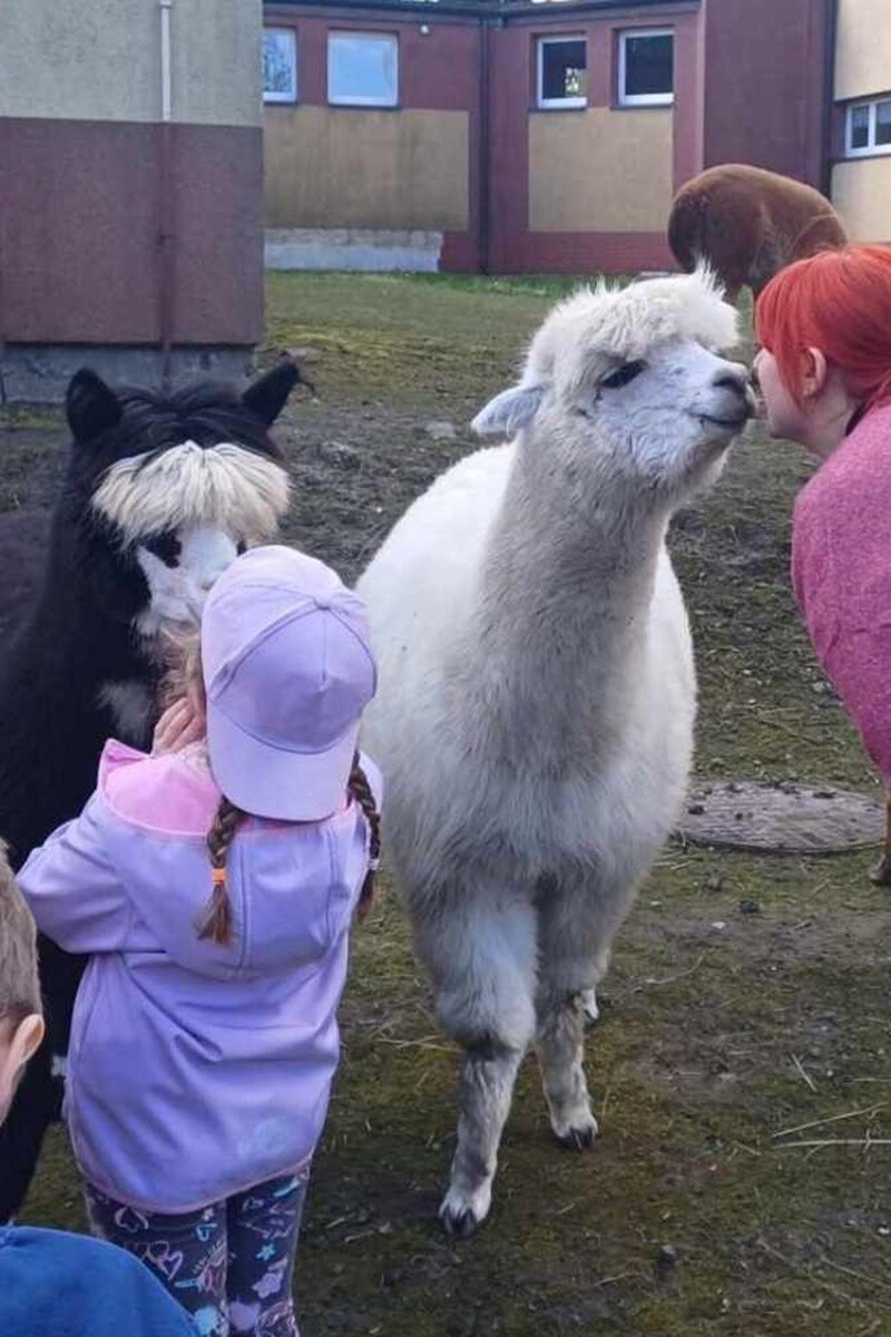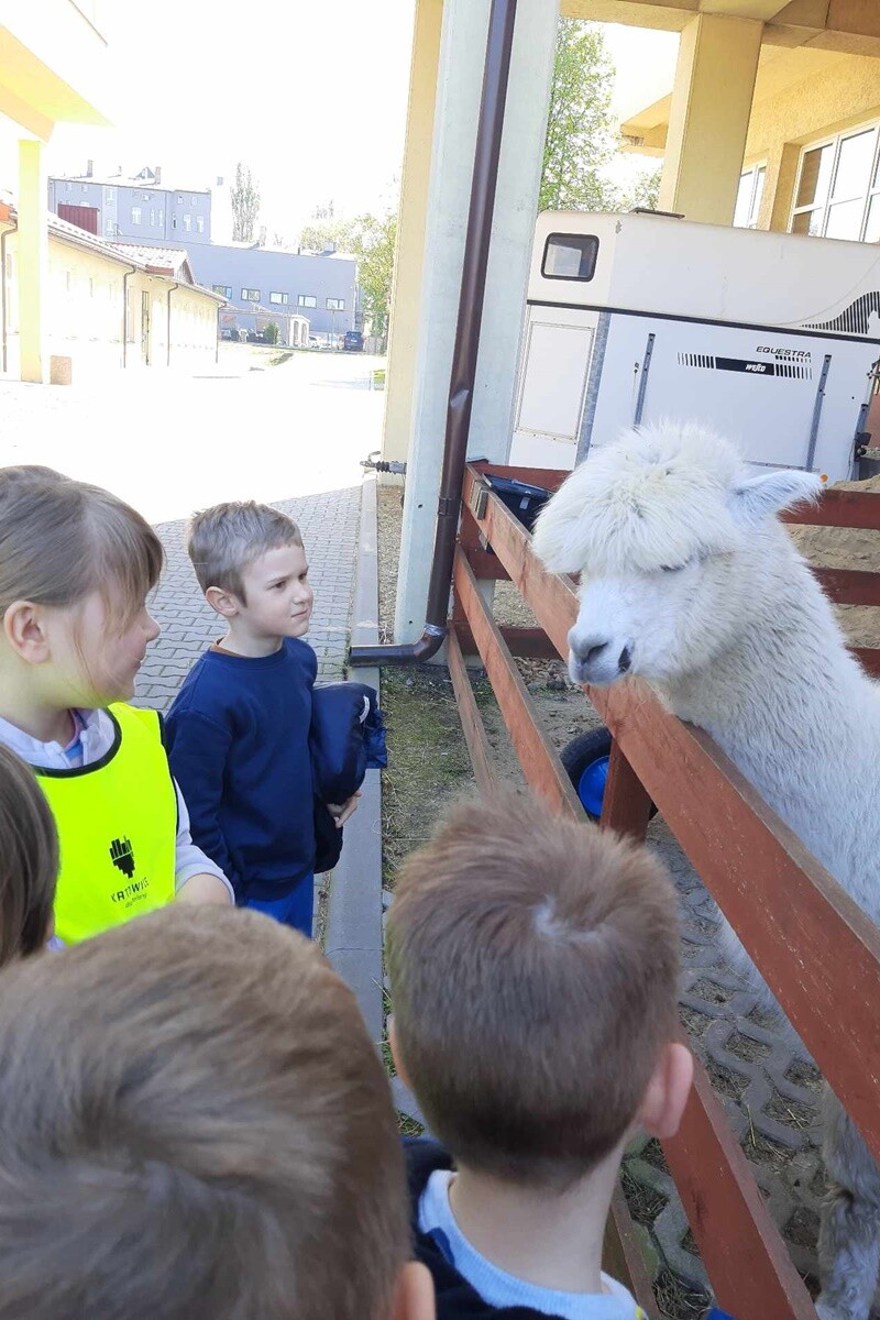 Starszaki mimo wielu obowiązków wybrały się również na wycieczkę do Seleziańskiej Szkoły Zawodowej w Świętochłowicach, gdzie miały możliwość przebywania z alpakami. Dzięki uprzejmości opiekunów zwierząt mogły zapoznać się z ich życiem, zwyczajami i sprawdzić czy faktycznie mają miękkie futra.