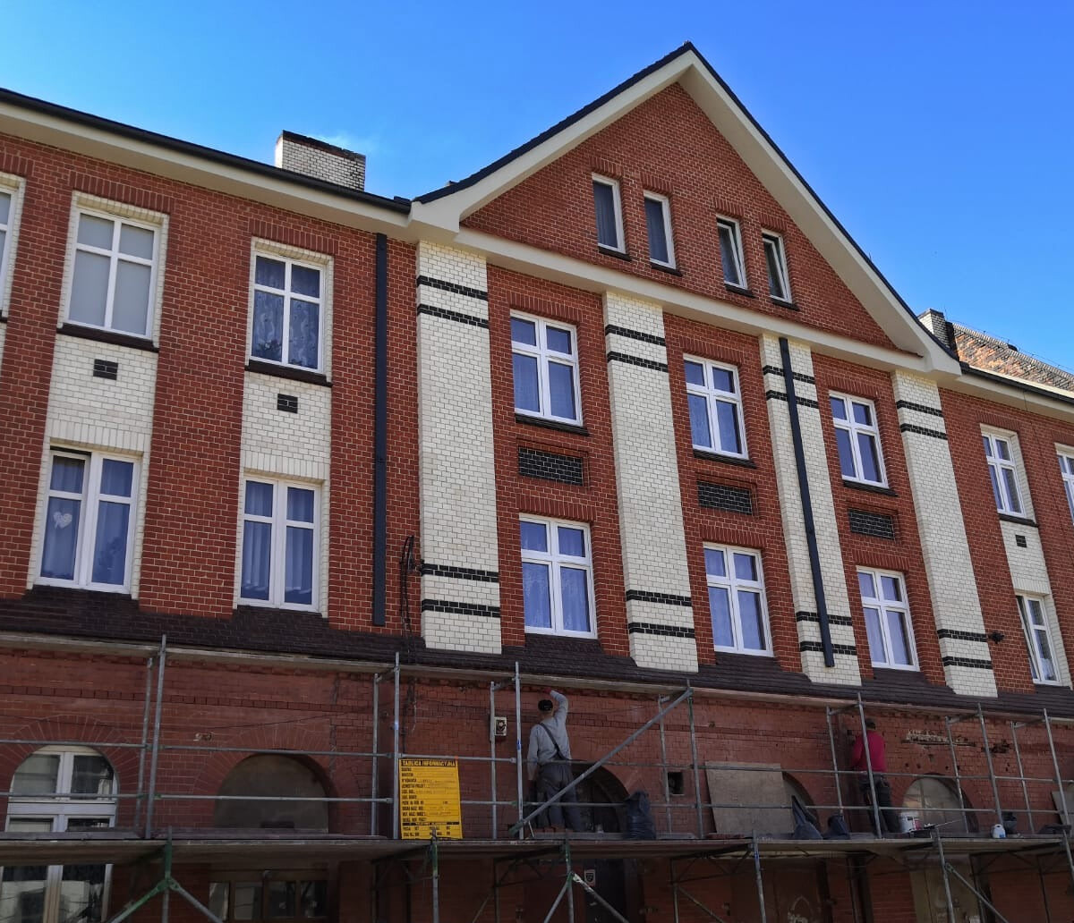 Jak informuje MPGL Świętochłowice, praca przy remoncie obiektu trwa. W efekcie prowadzonych prac zrewitalizowana zostanie ceglana elewacja frontowa.