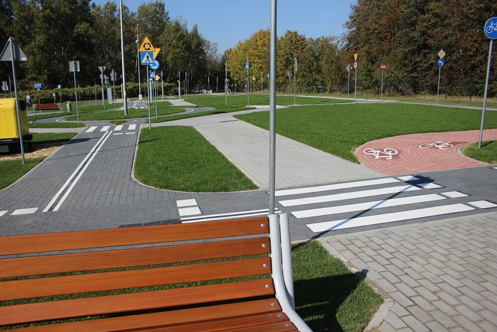 W ramach inwestycji wybudowane zostały także chodniki i ścieżka rowerowa. Miasteczko wyposażono w kilkadziesiąt znaków drogowych, oświetlono i objęto monitoringiem. Na miejscu znalazły się ławki, kosze na śmieci i stojaki dla rowerów, a przy drodze dojazdowej parking dla samochodów osobowych. Koszt przedsięwzięcia to 1,2 mln zł.