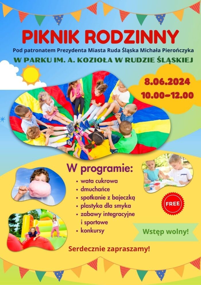 Rudzki Młodzieżowy Dom Kultury serdecznie zaprasza wszystkich do wspólnej zabawy na świeżym powietrzu! 8 czerwca, w godzinach od 10:00 do 12:00, w parku Kozioła w dzielnicy Ruda na najmłodszych rudzian będzie czekało wiele atrakcji! Wśród nich organizatorzy wymieniają dmuchańce, zabawy integracyjne i sportowe, zajęcia plastyczne, konkursy i spotkanie z bajeczką. Nie zabraknie także dobrej muzyki i słodkości w postaci waty cukrowej!