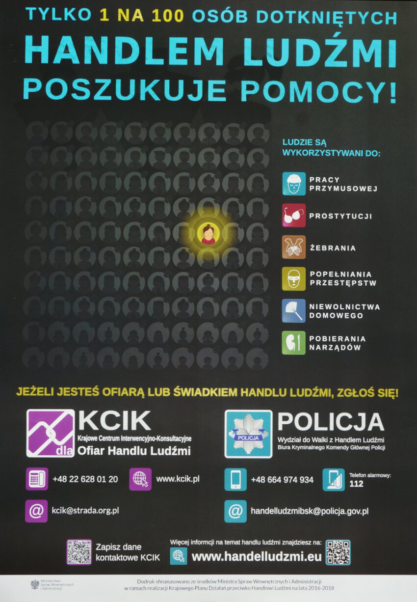 Ministerstwo Spraw Wewnętrznych i Administracji zainicjowało kampanię społeczną ukierunkowaną na problematykę handlu ludźmi i zagrożeń związanych z podejmowaniem pracy za granicą. Jednym z elementów tej kampanii jest mobilna wystawa poświęcona zjawiskom wchodzącym w zakres tego procederu. Wystawa będąca w dyspozycji Wydziału Spraw Obywatelskich i Cudzoziemców Śląskiego Urzędu Wojewódzkiego eksponowana jest w obiektach, gdzie istnieje duża szansa dotarcia do odbiorców. Rudzcy uczniowie mogli oglądać ją w Zespole Szkół nr 2 w Bielszowicach, a teraz w Kochłowicach, gdzie na głównym holu stanęło sześć profili z planszami. Umieszczone na nich informacje w języku polskim, angielskim i rosyjskim mają uświadomić odbiorcom powagę problemu, jakim jest handel ludźmi. Ten okrutny rodzaj przestępczości zorganizowanej ma bardzo złożony charakter. Polska ze względu na swoje położenie, sytuację gospodarczą i społeczną jest zarówno krajem tranzytu osób na zachód Europy, jak również miejscem docelowym dla ofiar handlu ludźmi. Poszukujący pracy i lepszego życia są wykorzystywani do przymusowych zajęć, prostytucji, żebrania, czy do popełniania różnego rodzaju przestępstw lub wykroczeń. Wykorzystywani są do wyłudzania świadczeń, a ich prawa, jako pracowników nie są respektowane. Takie sytuacje mogą spotkać również osoby wyjeżdżające za granicę w celach zarobkowych. Istotna jest więc świadomość, a także wiedza na temat zagrożeń, które mogą czyhać w miejscu podjęcia pracy często dorywczej.
