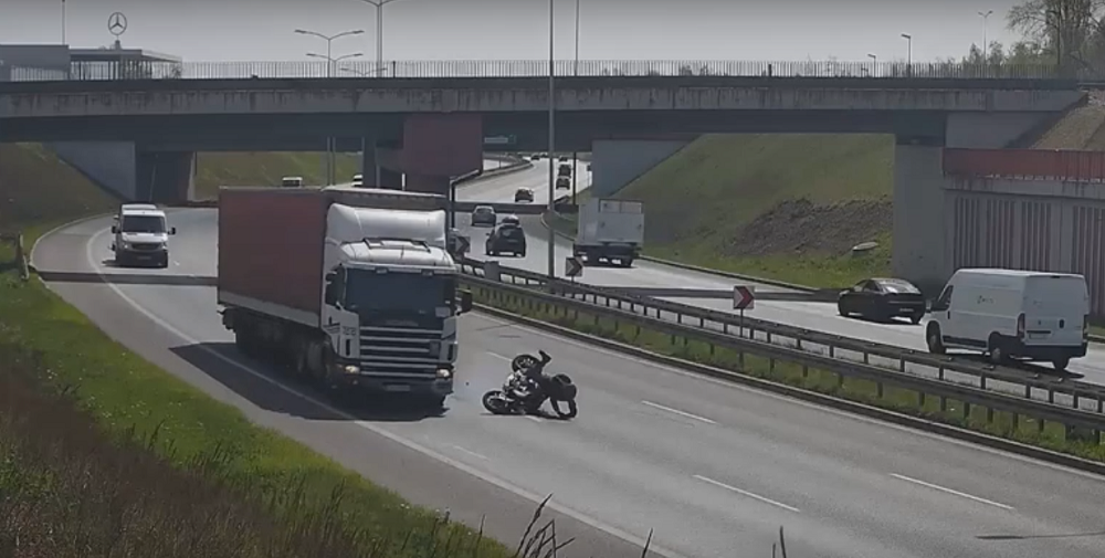 Do zdarzenia doszło 27 kwietnia po godzinie 10:00 na Drogowej Trasie Średnicowej na wysokości Chebzia. Motocyklista, który poruszał się w kierunku Gliwic, nagle stracił panowanie nad maszyną. Chcąc uniknąć zderzenia z ciężarówką, która poruszała się na prawym pasie ruchu, "położył" motor. Kierowca motocykla sunął przez pewien czas po jezdni.