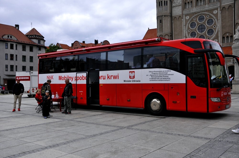 Tuż obok nieustannie czuwał biało-czerwony autobus, czyli mobilny punkt poboru krwi, gdzie do godziny 14:00 można było dać od siebie tę - jakże dla niektórych drogocenną! - odrobinę czerwonego życia.