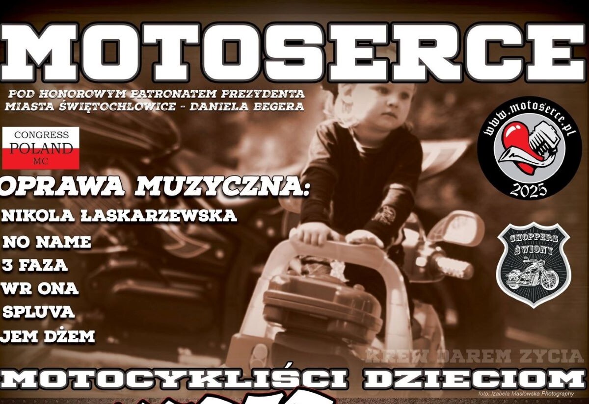 Już 24 maja w Świętochłowicach po raz czwarty odbędzie się lokalna odsłona ogólnopolskiej akcji Motoserce. To wyjątkowe wydarzenie łączy fanów motocykli, muzyki i... pomagania innym. Na terenie OSiR Skałka przy ul. Bytomskiej 40 od godziny 9:00 będzie się działo naprawdę dużo. Organizatorzy – niezawodni Choppers Świony – jak zawsze szykują mnóstwo atrakcji, z rockową energią i dobrym sercem w tle.