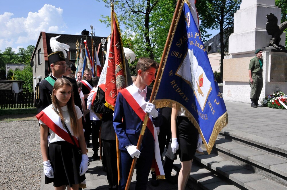 Po mszy odbył się przemarsz pocztów sztandarowych pod pomnik Powstańców Śląskich, gdzie wspólnie oddano cześć tym, którzy walczyli o wolną Polskę.
