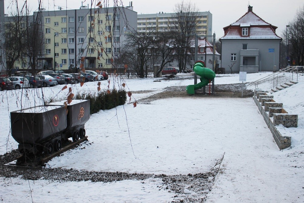 Zakres prac obejmował zagospodarowanie skarpy, montaż schodów i ławek, wyrównanie i utwardzenie terenu oraz montaż urządzenia zabawowego. Całość dopełniła ekspozycja wagoników kopalnianych, które stanowią symbol historii tego miejsca.