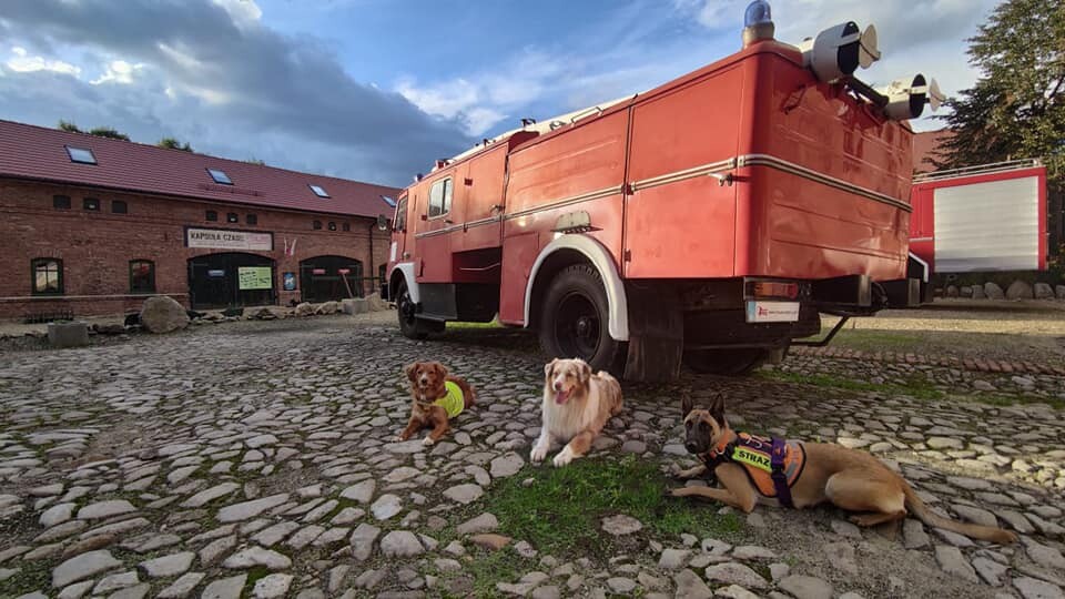 Zarówno strażacy, jak i Ruda – szkolony Retriver, ze specjalistycznej grupy poszukiwawczo-ratowniczej OSP wciąż się szkolą i trenują. W miniony wtorek 20 września trenowali na terenie rudzkiego Muzeum PRL-u. We współpracy z OSP Okradzionów ułożyli plan treningu tak, aby był ciekawy zarówno dla ich psów, jak i osób, które były schowane.