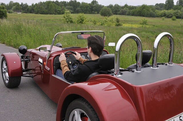 Stworzyłem replikę Lotusa 7. Jest on odwzorowaniem Caterhama z 1985 roku. To angielski mały samochód sportowy o prostej konstrukcji. Silnik znajduje się z przodu, auto ma napęd na tył, nie posiada żadnego wspomagania, ABS-u czy innego typu systemów bezpieczeństwa. Samochód dobrze się prowadzi ze względu na małą masę, szeroki rozstaw kół i prostą konstrukcję. Wszystkie wymiary i konstrukcja zostały w tej replice dokładnie odwzorowane. Silnik w tym samochodzie pochodzi z Forda Sierry. To żeliwny blok i głowica, który można łatwo modyfikować i jest podatny na tuning. Seryjnie silnik ten miał 100 koni mechanicznych. Teraz będzie miał około 120-130 KM. To wystarczy, ponieważ auto jest lekkie, osiąga ok. 6,5 sekundy do „setki”. Do tego silnika są dostępne wszystkie części, od gaźników, wałków, kolektorów, po komputer sterujący pracą silnika. Oczywiście mówię o dostępności na rynku angielskim.