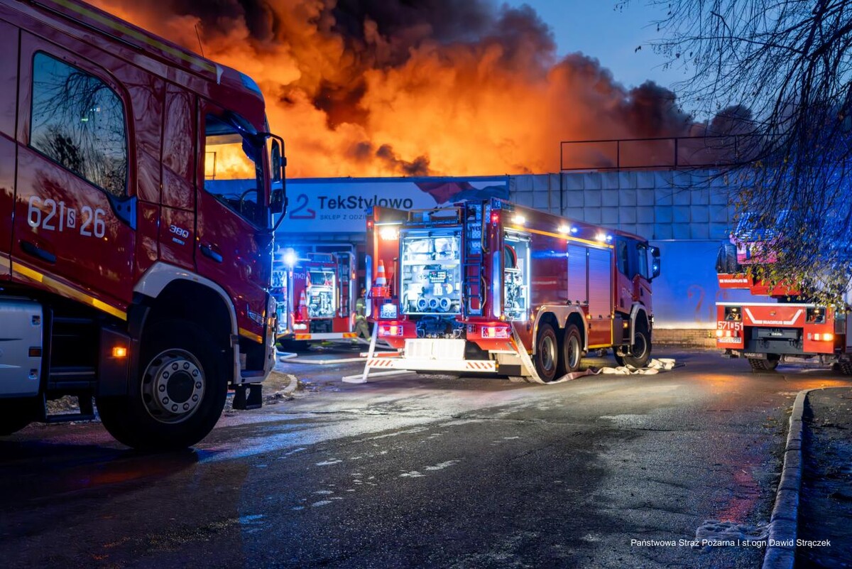 Budynek, w którym znajdują się takie sklepy jak Chiński Market, Biga czy Tekstylowo, stanął dziś w płomieniach, generując ogromne kłęby dymu widoczne są z odległych części miasta.