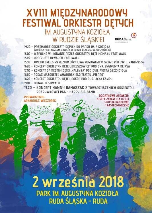 Polska piosenkarka i wokalistka jazzowa Hanna Banaszak będzie gwiazdą tegorocznej edycji Międzynarodowego Festiwalu Orkiestr Dętych w Rudzie Śląskiej. Jak co roku wezmą w nim udział rudzkie orkiestry dęte: „Pokój”, „ Halemba”, oraz „ Bielszowice”, a także Orkiestra Górnicza Muzeum Górnictwa Węglowego w Zabrzu. Wydarzenie uświetni też występ mażoretek amatorskiego Teatru „Pierro”. 18. edycja imprezy odbędzie się w parku im. Augustyna Kozioła w Rudzie już 2 września /niedziela/.