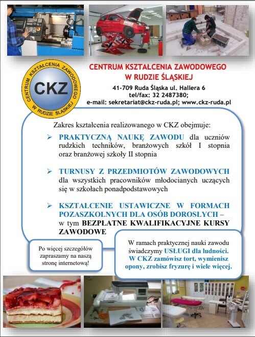 Przeważająca część uczniów szkół zawodowych odbywa praktyczną naukę zawodu w Centrum Kształcenia Zawodowego w Rudzie Śląskiej. Zajęcia odbywają się w czterech doskonale wyposażonych warsztatach przy udziale wysoce wykwalifikowanej kadry. Uczniowie kształcą się na poziomie branżowej szkoły I stopnia oraz technikum w wielu zawodach. Praktyczna nauka zawodu jest realizowana również u pracodawców. Uczeń ma wówczas status młodocianego pracownika.