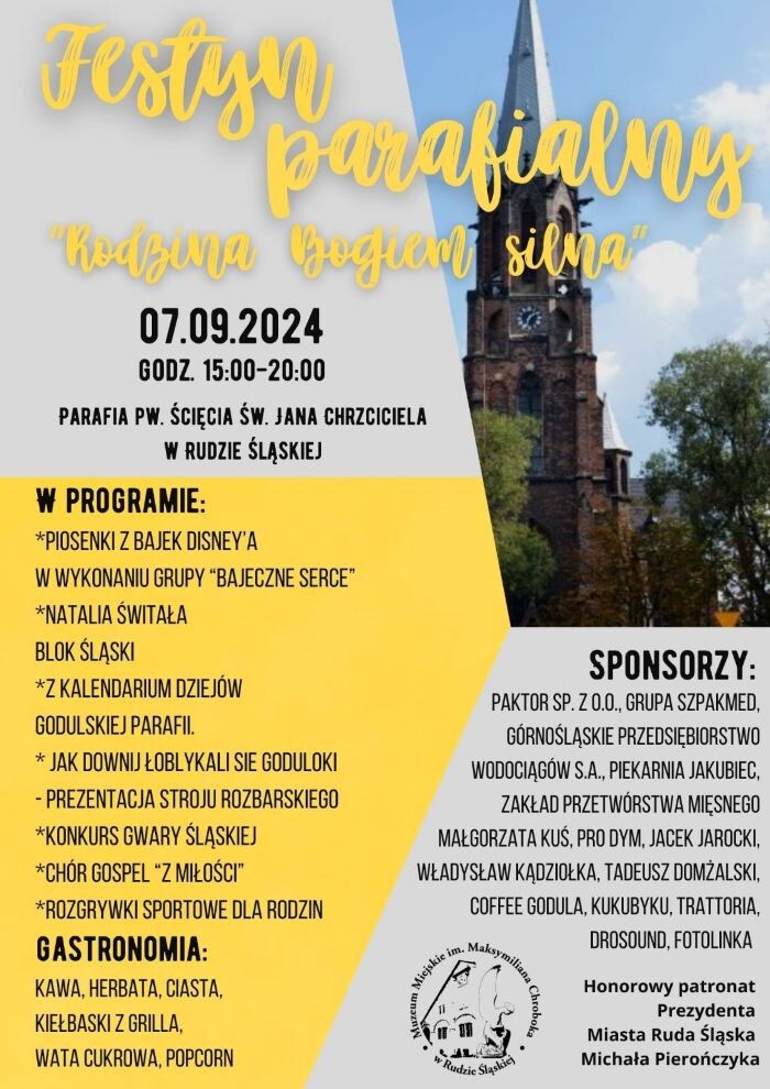Już w najbliższą sobotę, 7 września, przy parafii pw. Ścięcia Św. Jana Chrzciciela odbędzie się festyn parafialny pod hasłem „Rodzina Bogiem silna”.