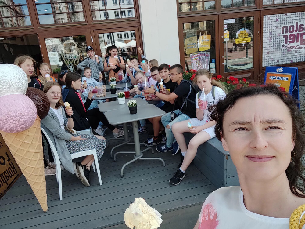 Dawkę wiedzy osłodziły lody, zjedzone na bytomskim rynku, pod czujnym, choć przymkniętym okiem śpiącego lwa.