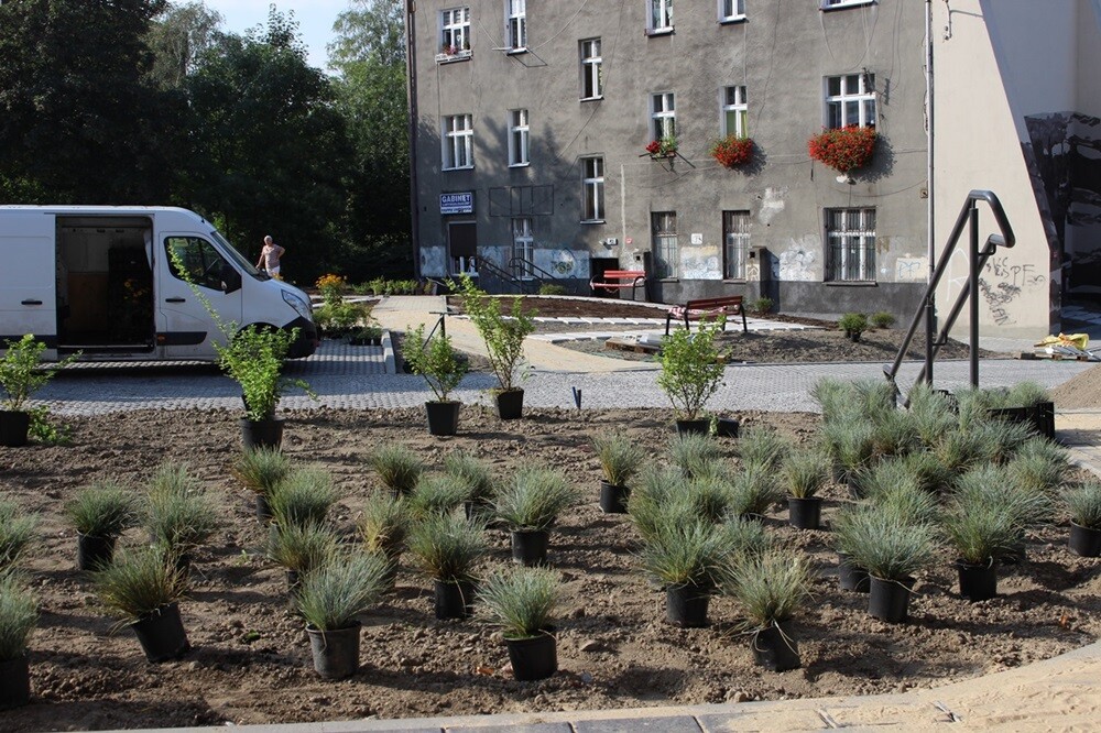 Ponad 1000 sadzonek roślin ozdobnych, setka krzewów oraz kilkadziesiąt drzew nasadzanych jest aktualnie na podwórku u zbiegu ulic Sienkiewicza, Tuwima i Odrodzenia. To jeden z końcowych etapów rewitalizacji tej przestrzeni.